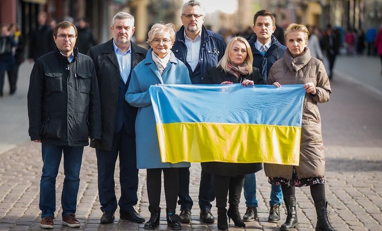 Posłanki i posłowie Torunia z Joanną Scheuring-Wielgus, Iwoną Hartwich, Tomaszem Lenzem, Arkadiuszem Myrchą, Zbigniewem Girzyńskim, Janem Krzysztofem Ardanowskim – oświadczyli dziś, że podejmują realne działania pomocowe dla obywateli Ukrainy.